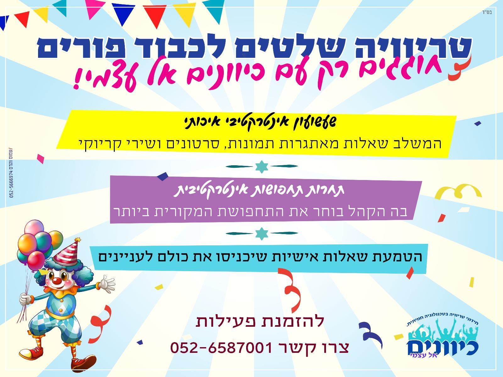 אנו נבנה לכם חידון מאתגר במיוחד בנושא פורים מלא בערכים ותוכן משובח |